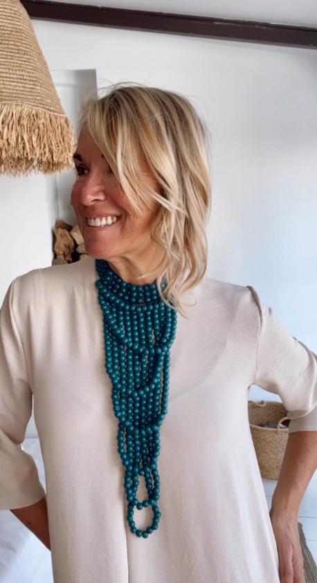 Collar de bolitas con diseño de nudo y cierre en la nuca.