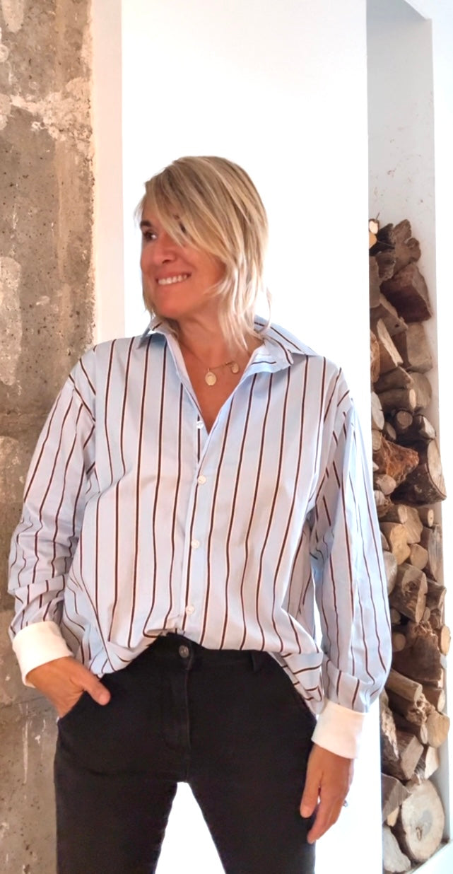 Camisa de manga larga. Corte recto. Cuello camisero clásico. Cierre frontal abotonado.