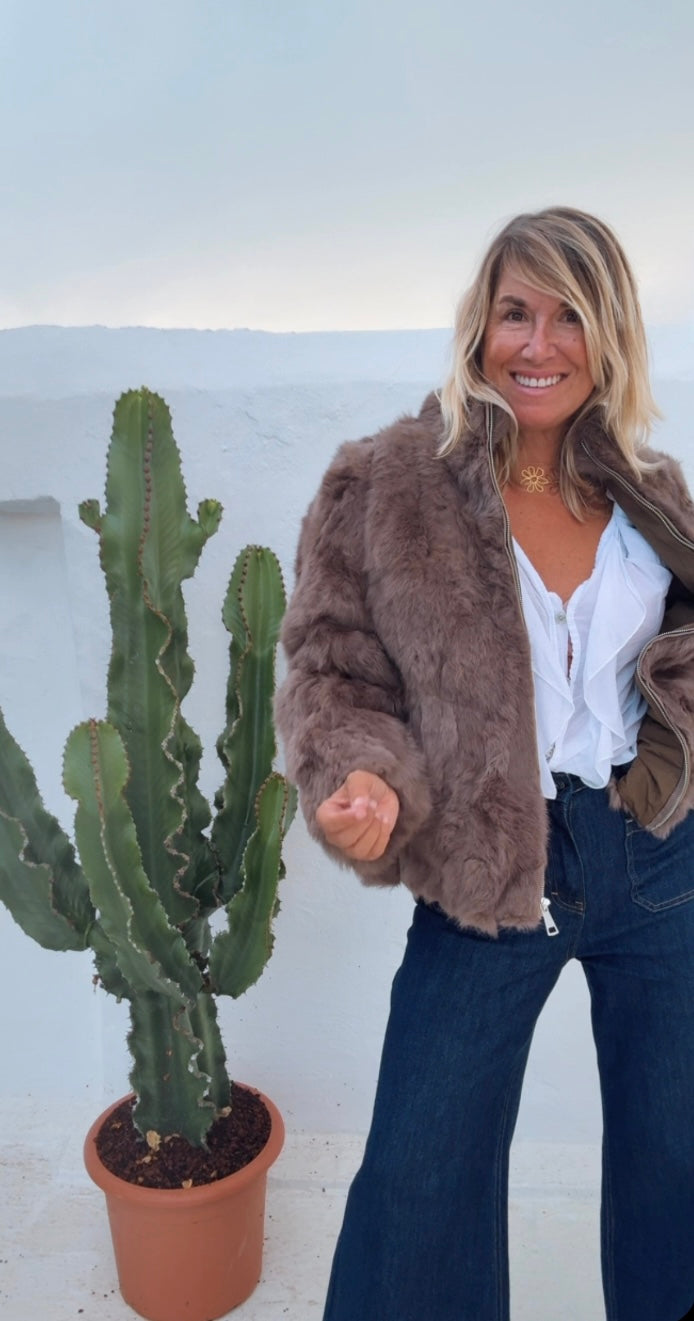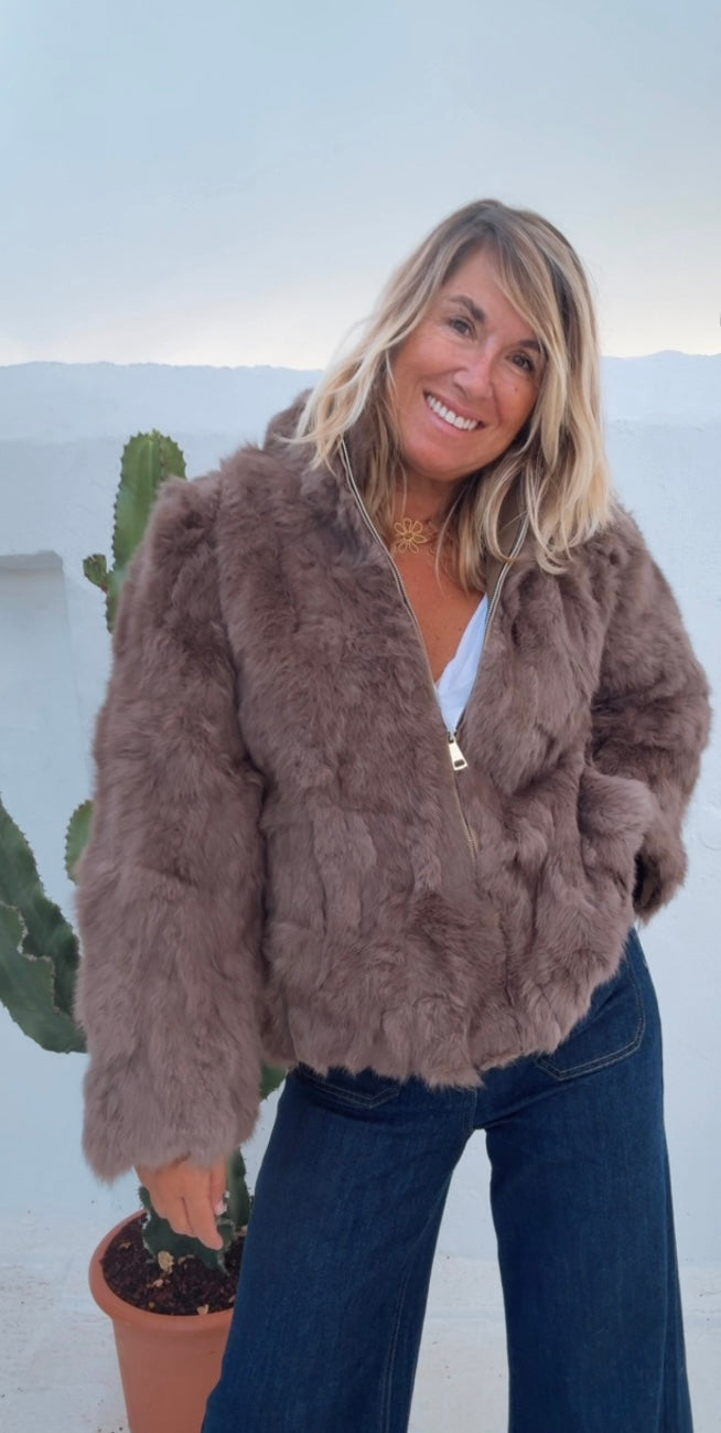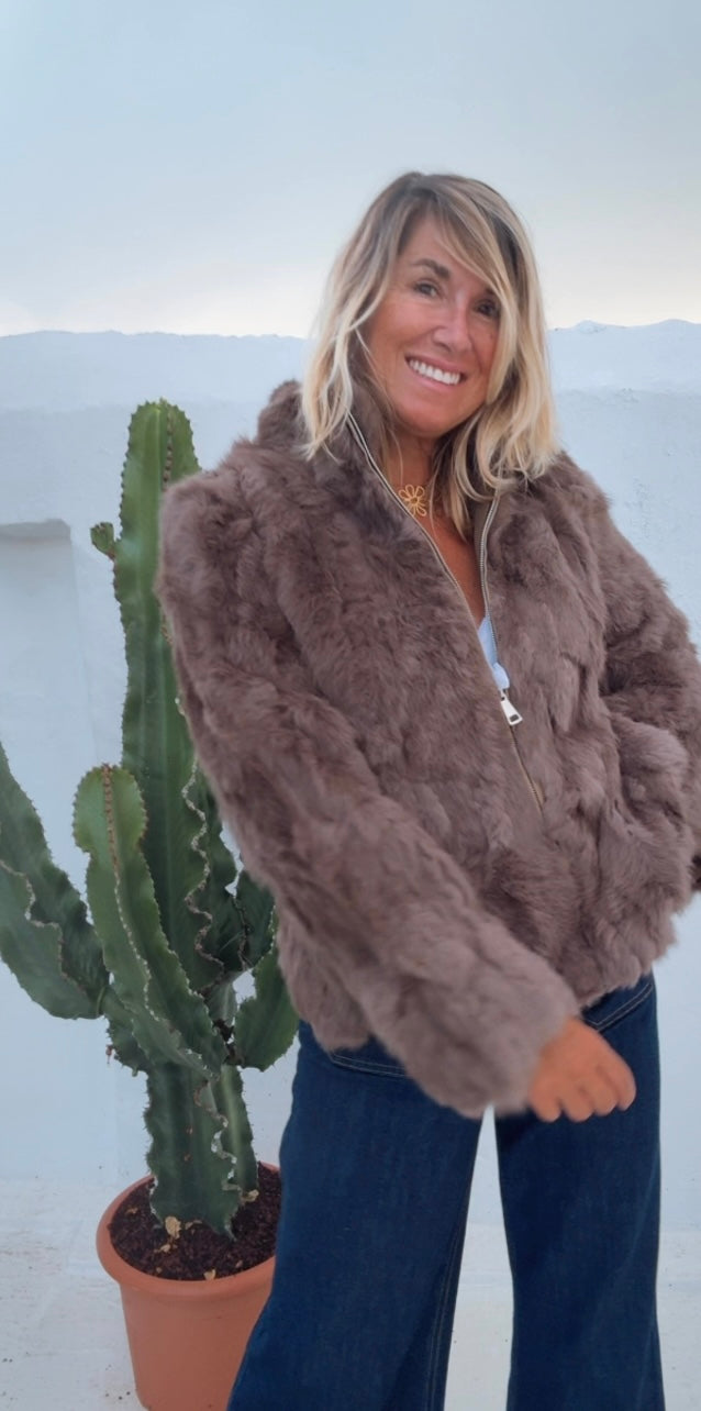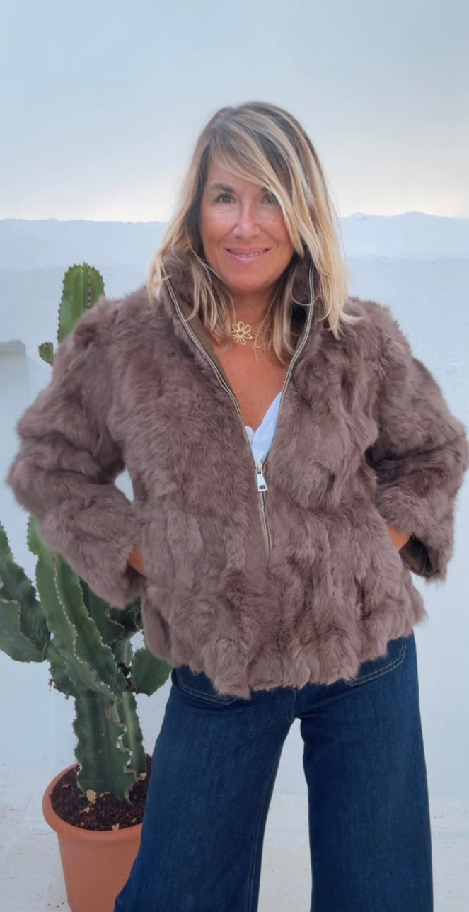 Abrigo de pelo. Corte recto. Cierre de cremallera con bolsillos laterales.