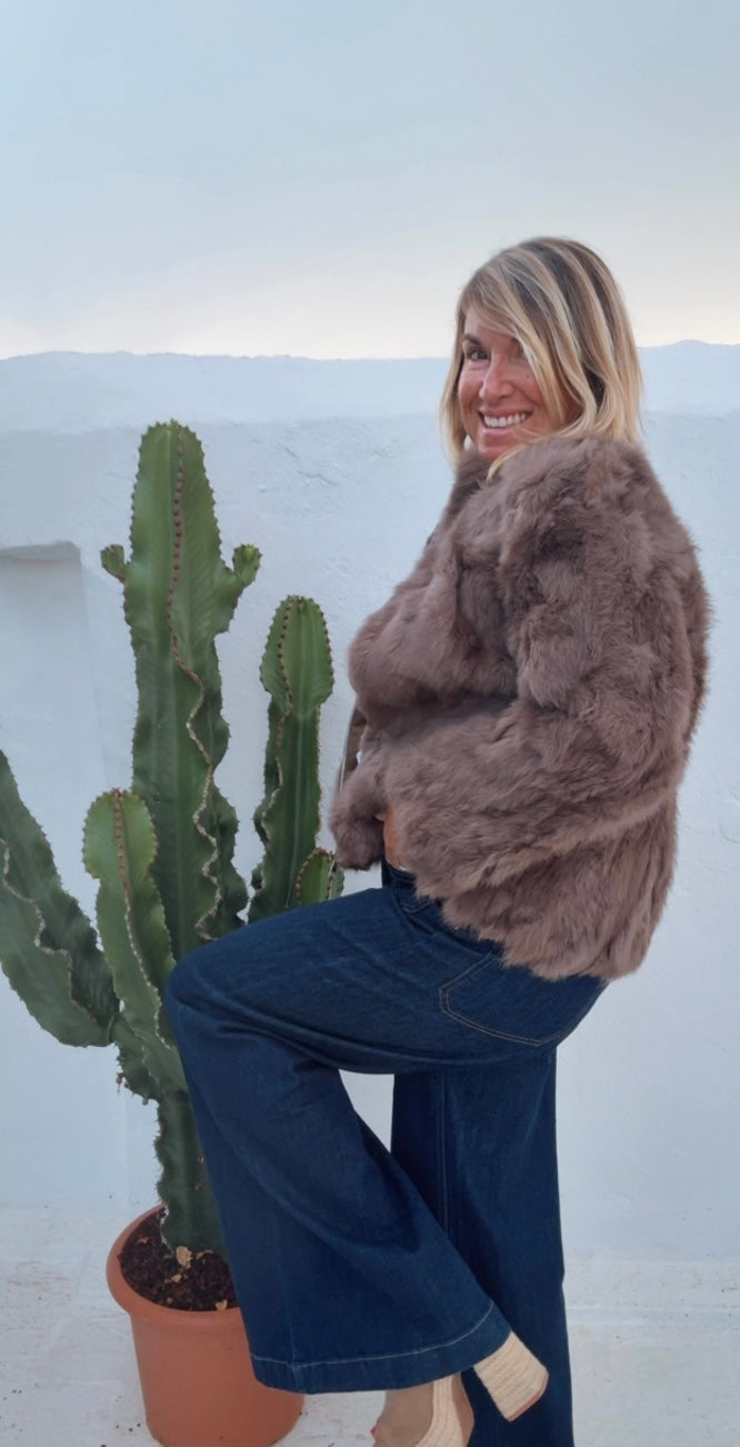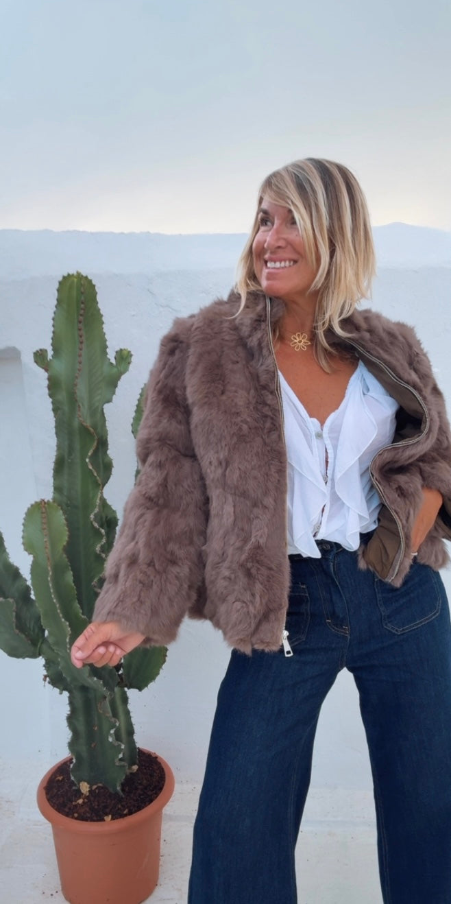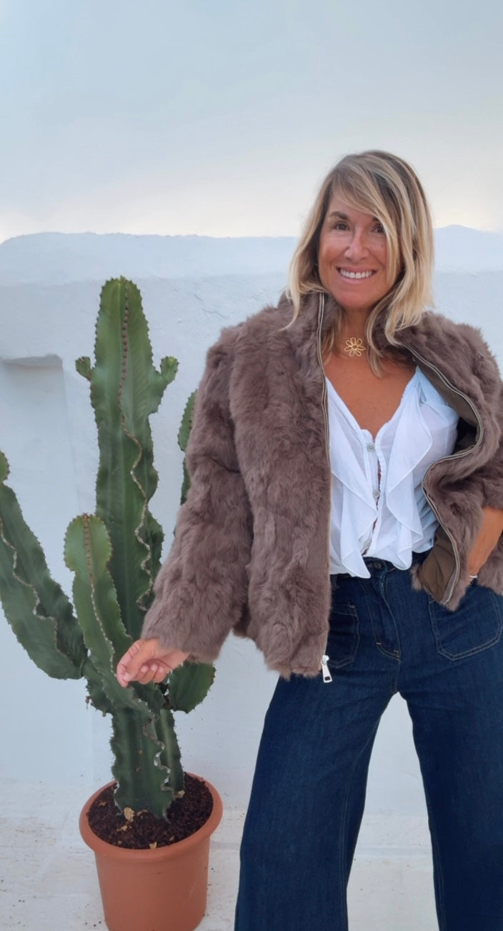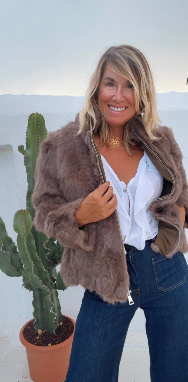 Abrigo de pelo. Corte recto. Cierre de cremallera con bolsillos laterales.