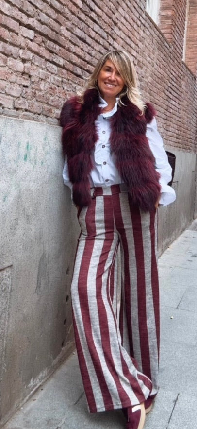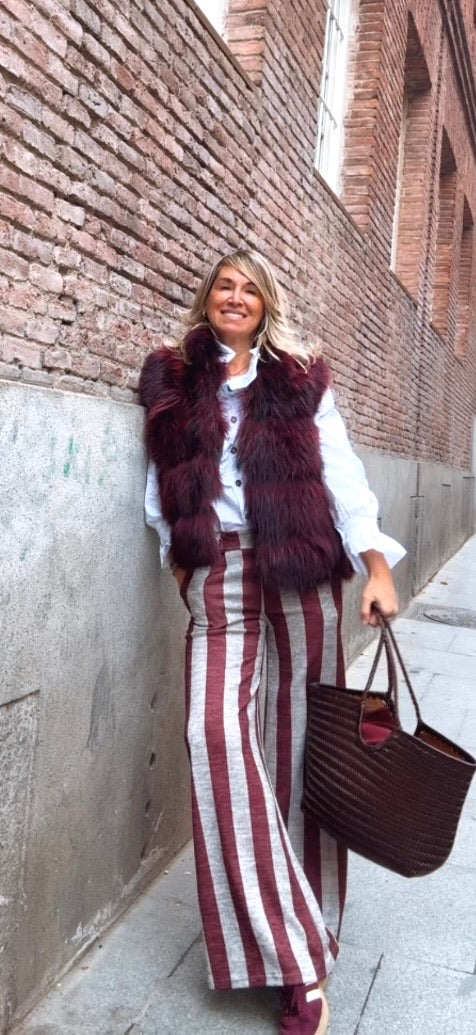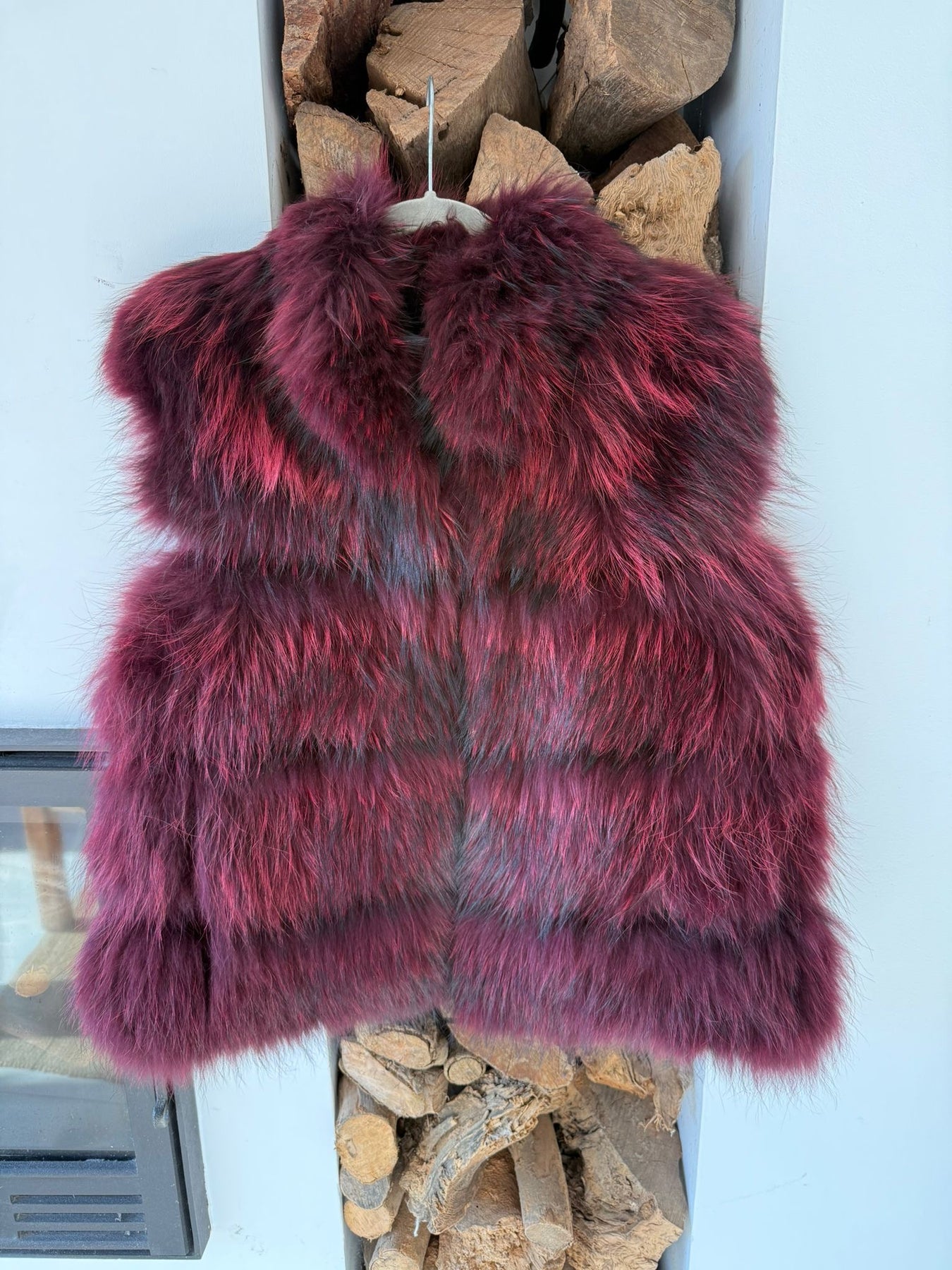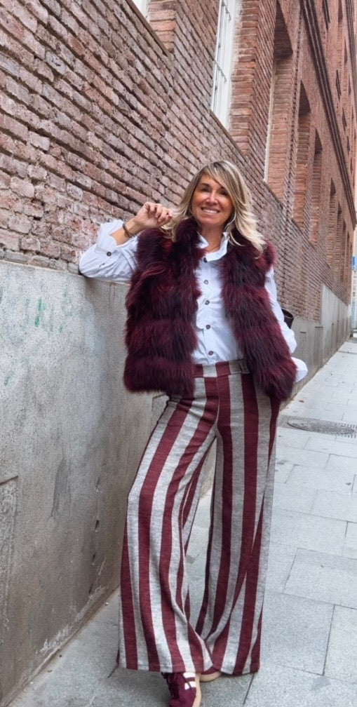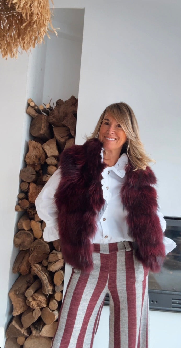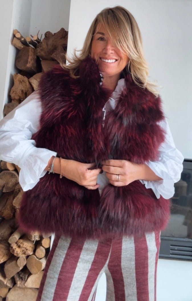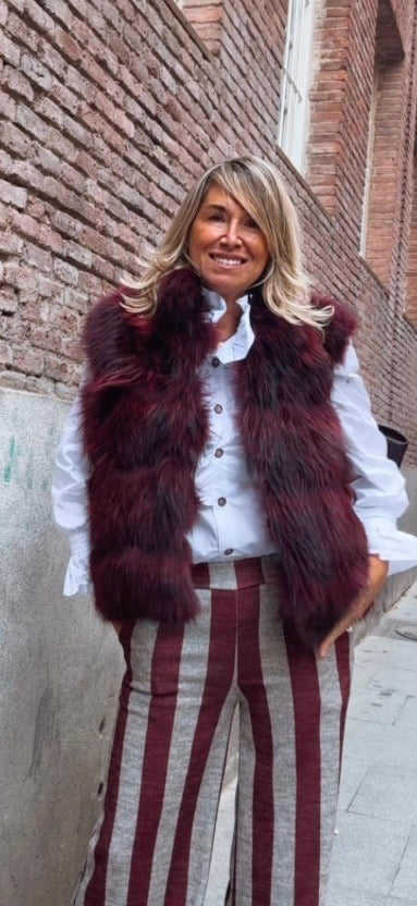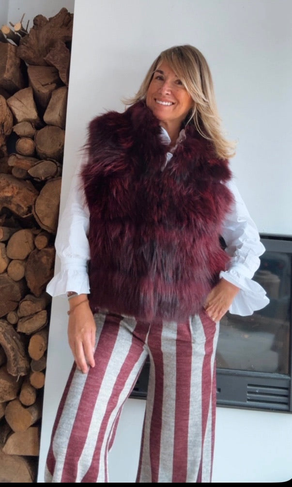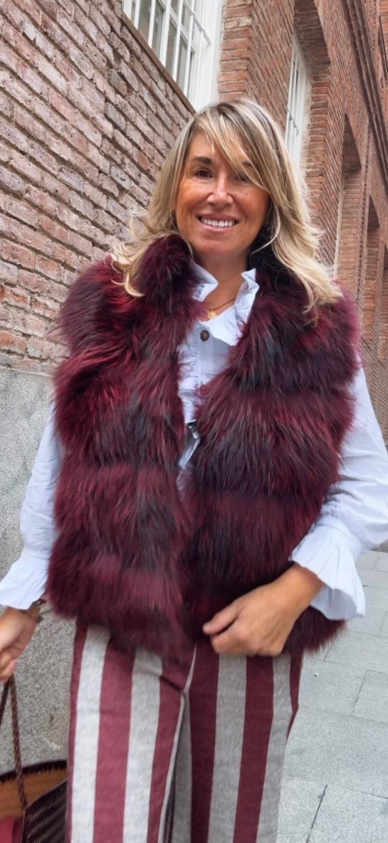 Chaleco de pelo zorro y conejo. Corte recto. Sin mangas y con textura suave y voluminosa.