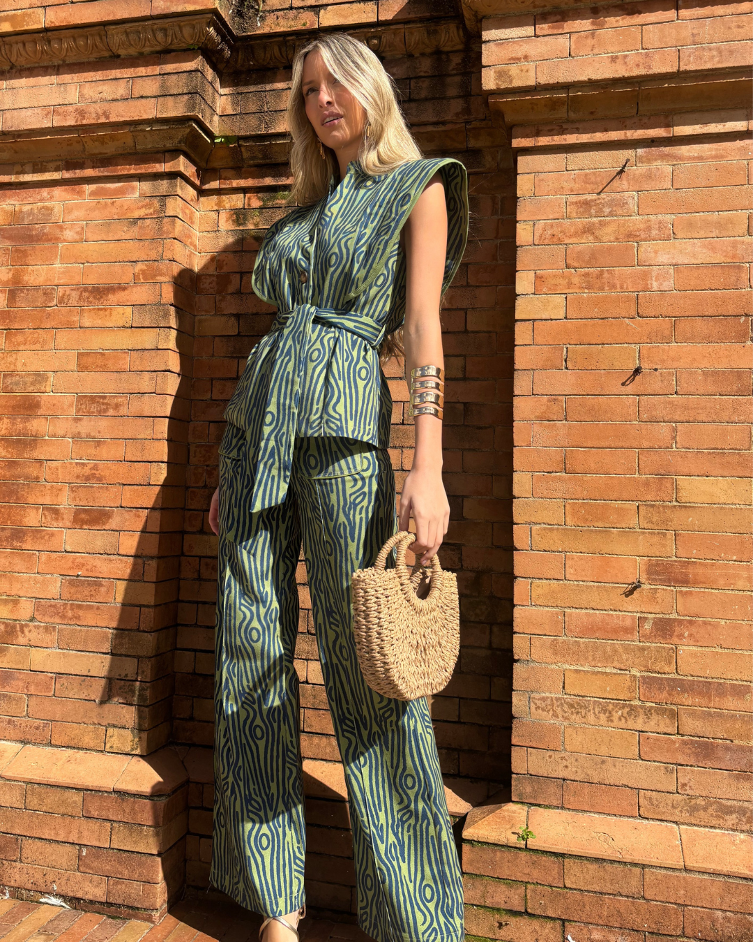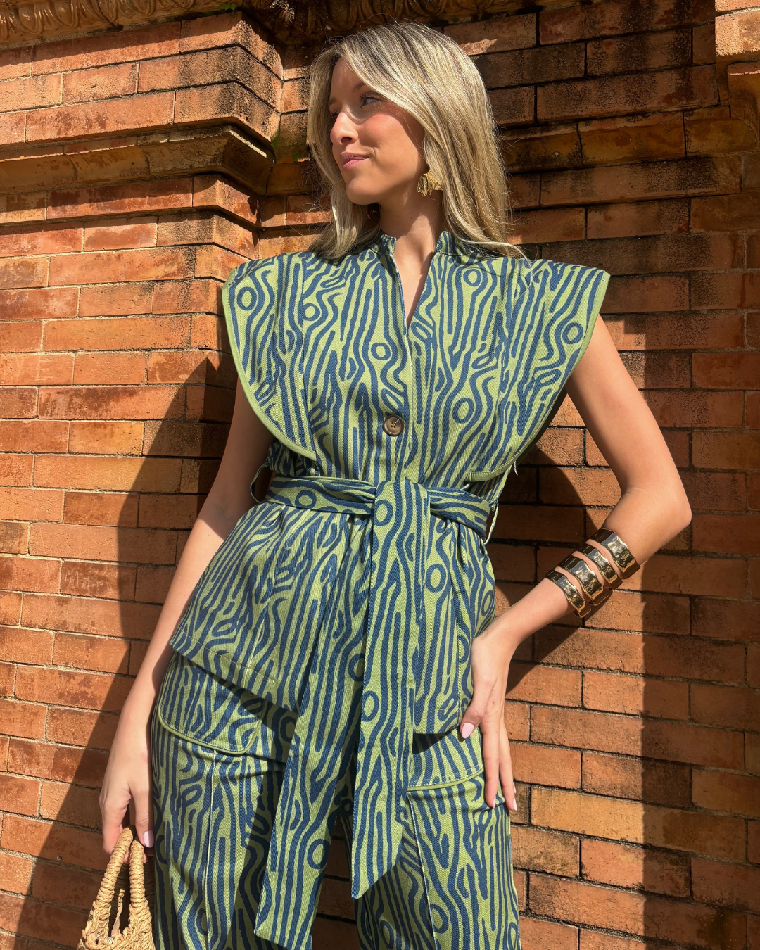 Diseño exclusivo disponible en color verde y estampado azul. 4 tallas disponibles.