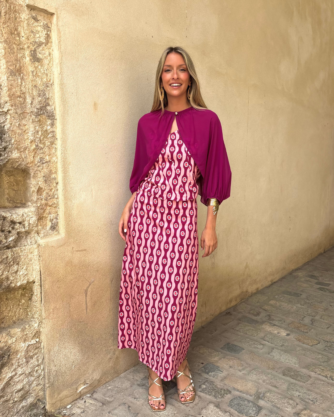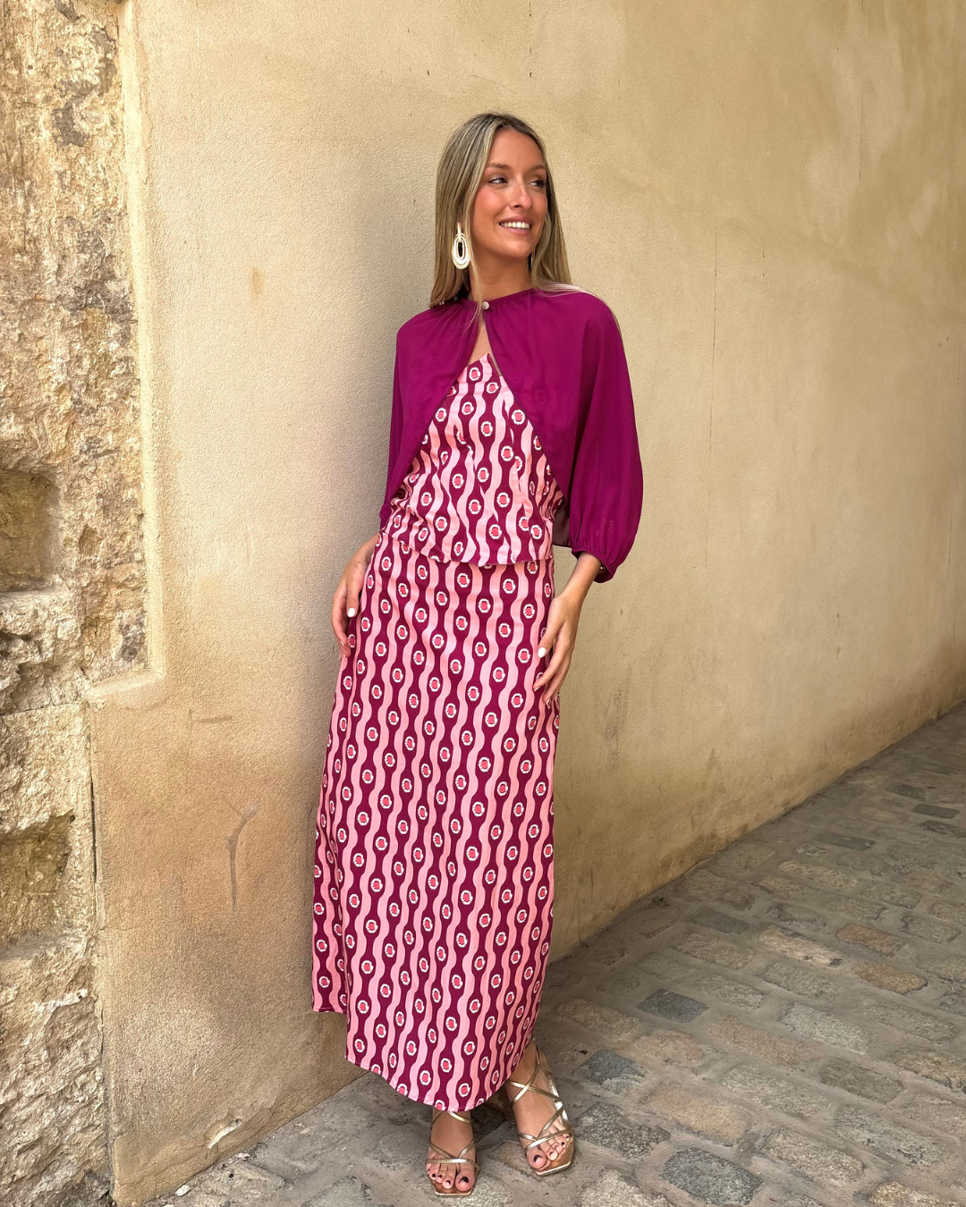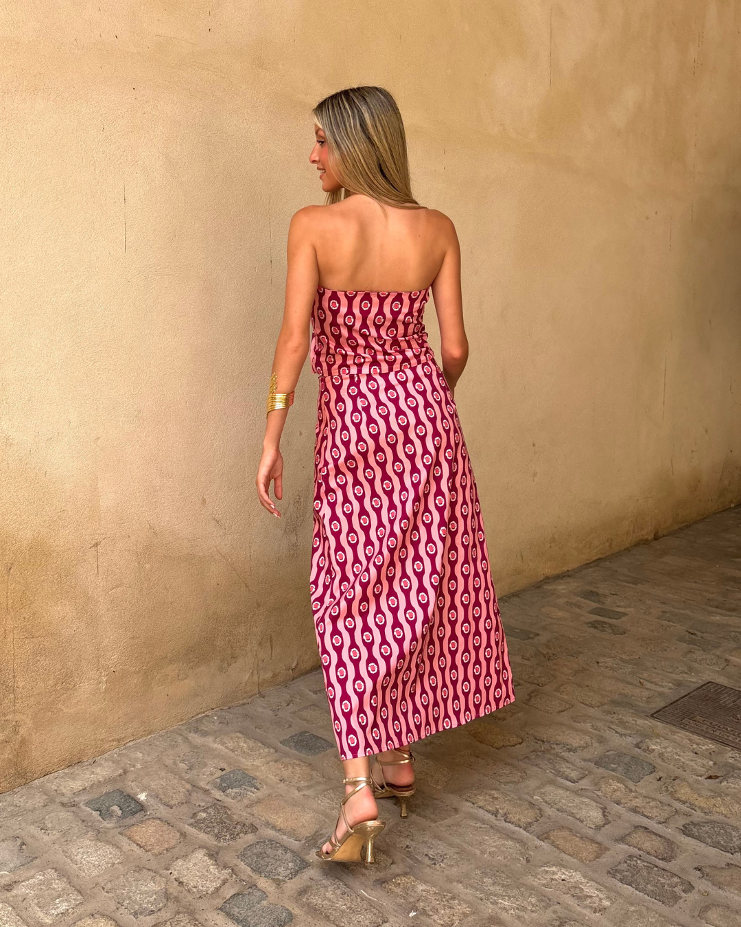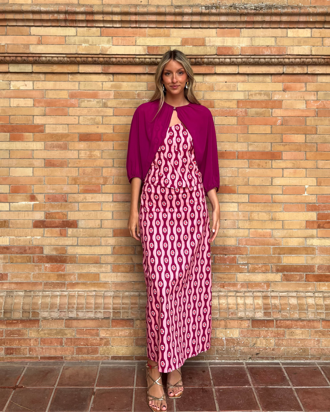 Falda estampada midi de talle alto. Cintura con cierre de cremallera lateral. Evasé desde la cadera.