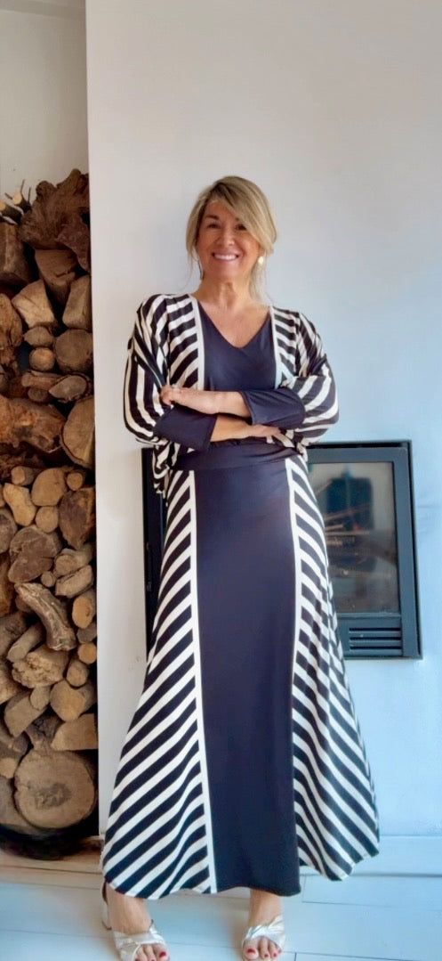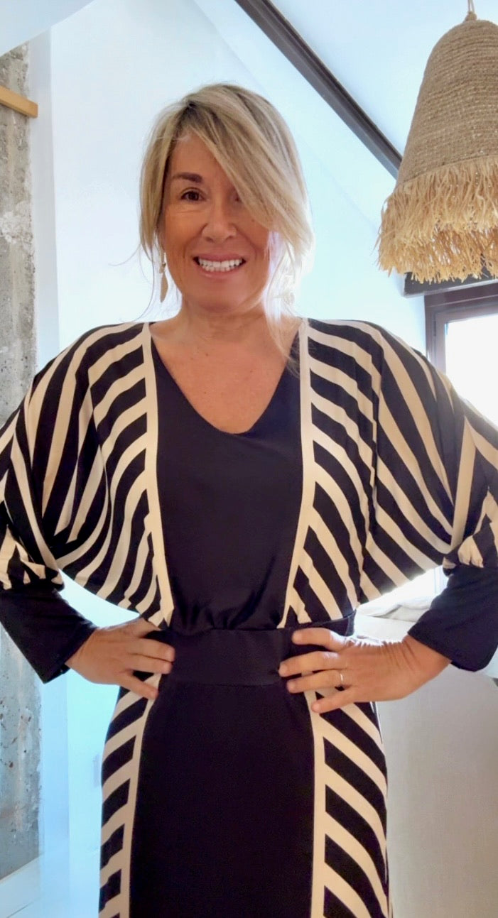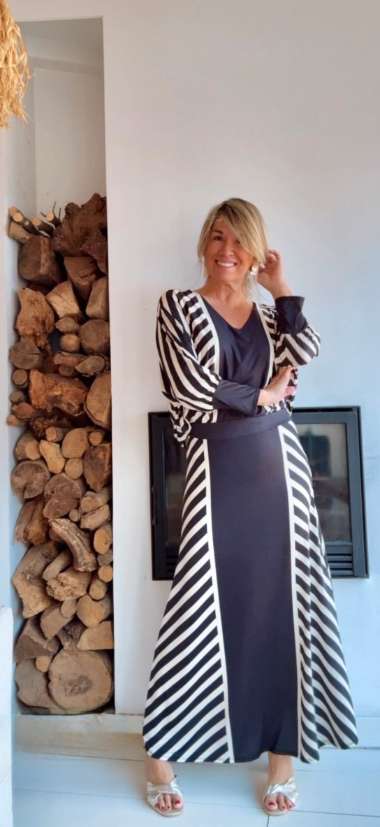 Diseño exclusivo disponible en estampado de rayas. Talla única.