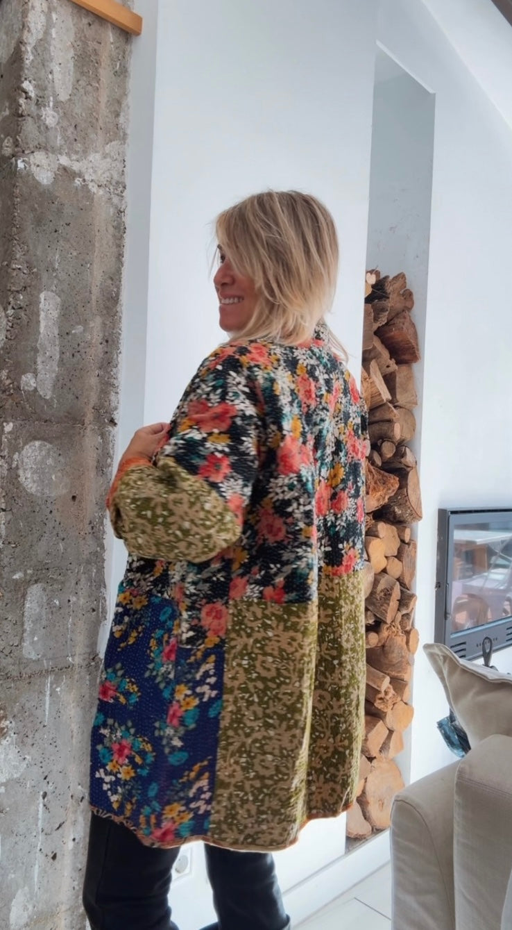 Chaqueta reversible estampada. Bolsillos frontales. 100% Algodón.