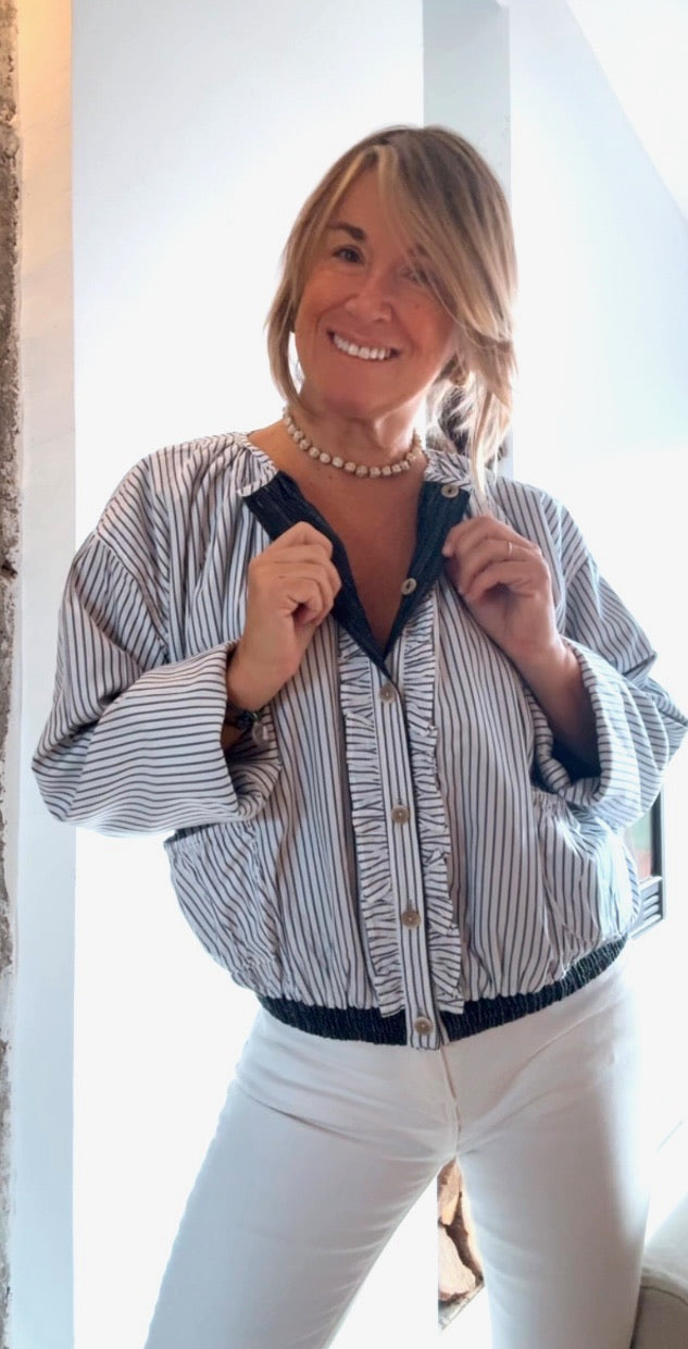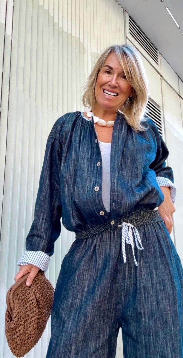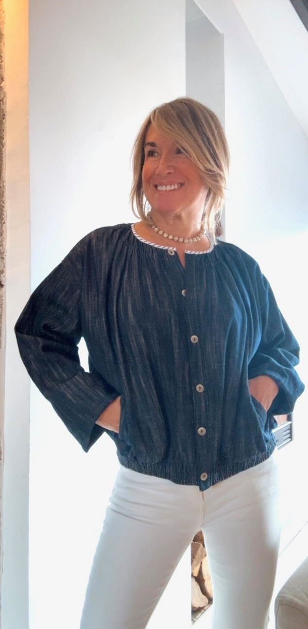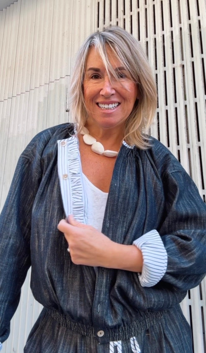 Esta chaqueta es preciosa, una maravilla para combinar con falda o pantalón. Además es reversible para llevar por la parte tejana con unos pantalones tejanos, y por el otro lado vichi con falda o pantalones blancos.