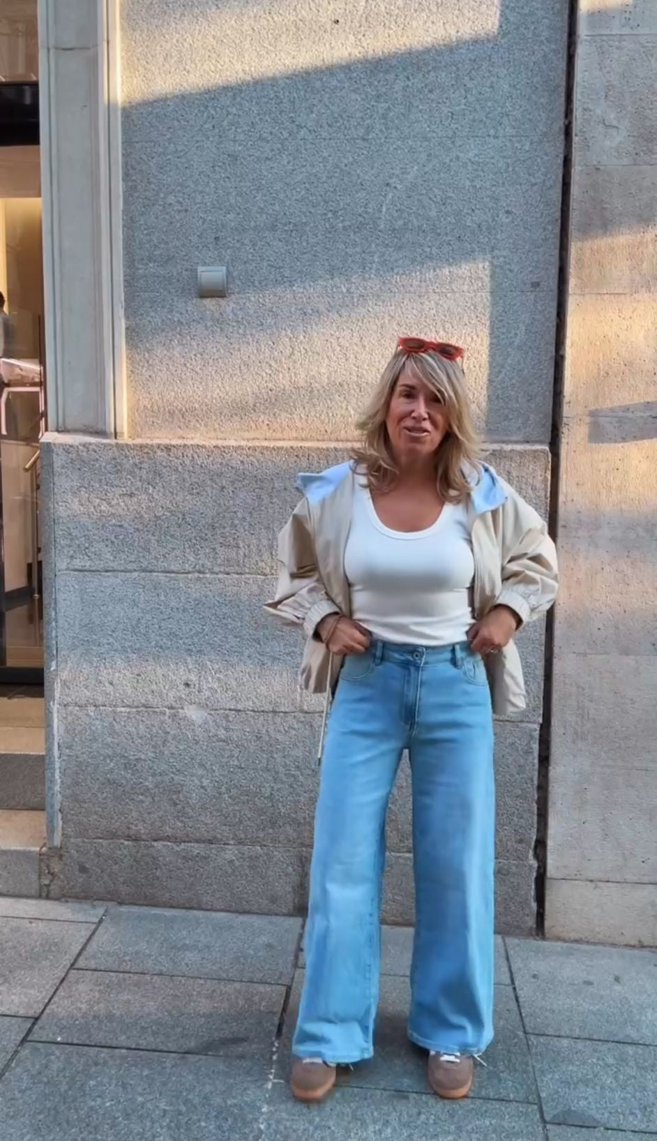 La modelo mide 170 cm y lleva la talla M