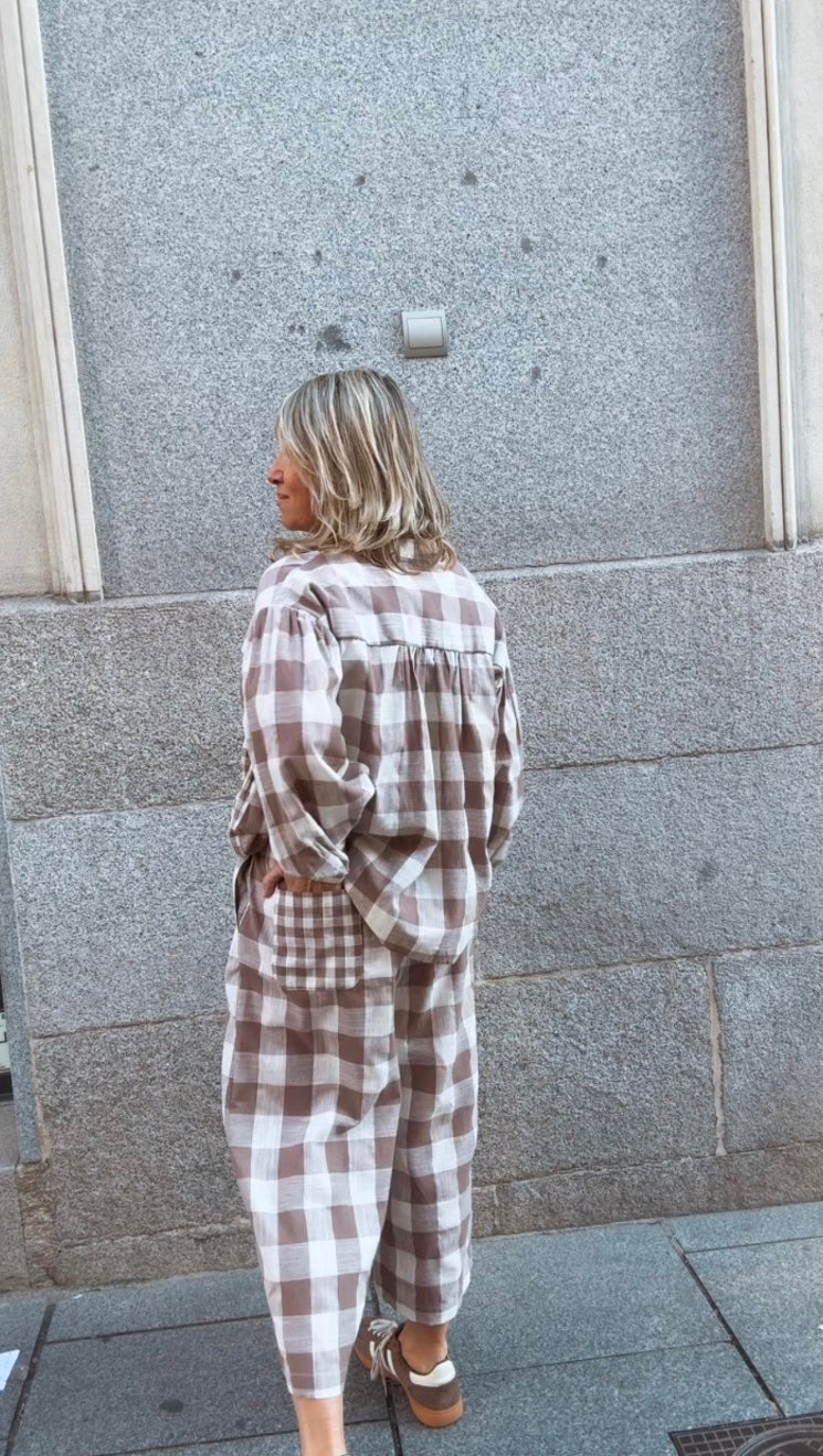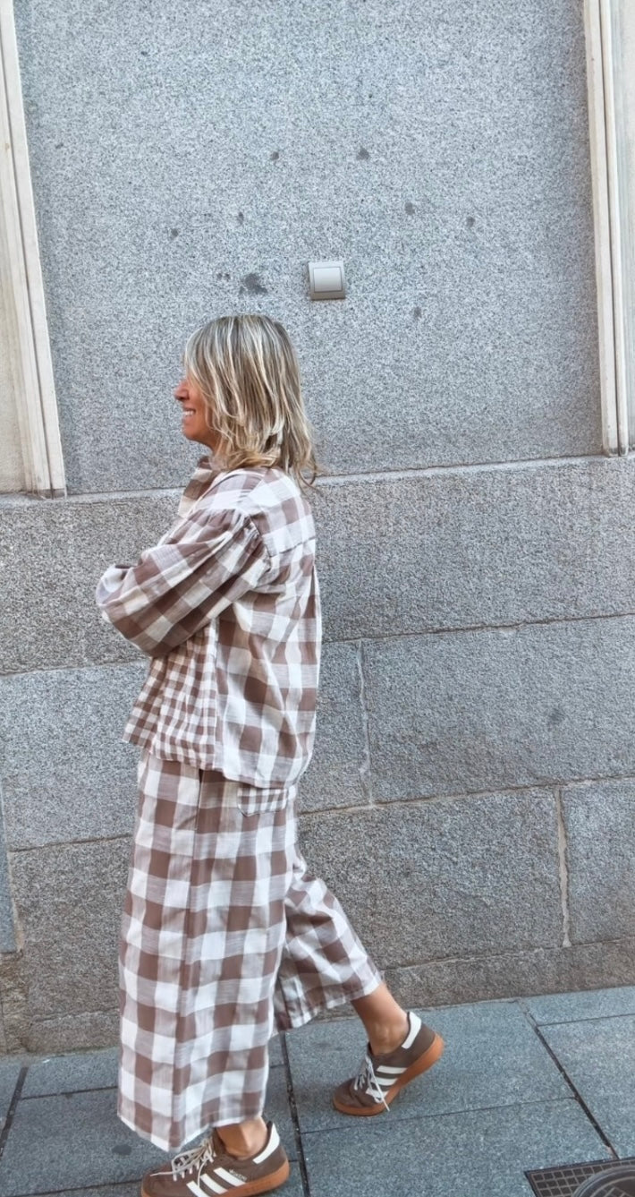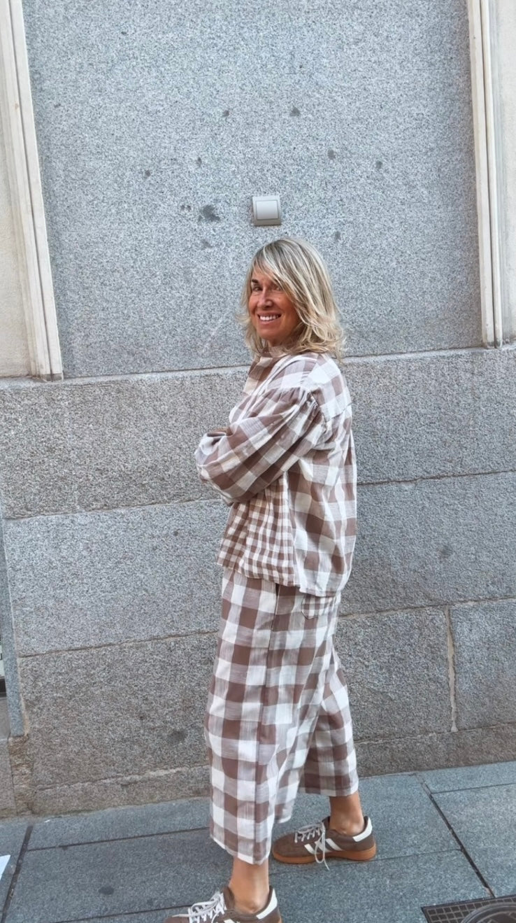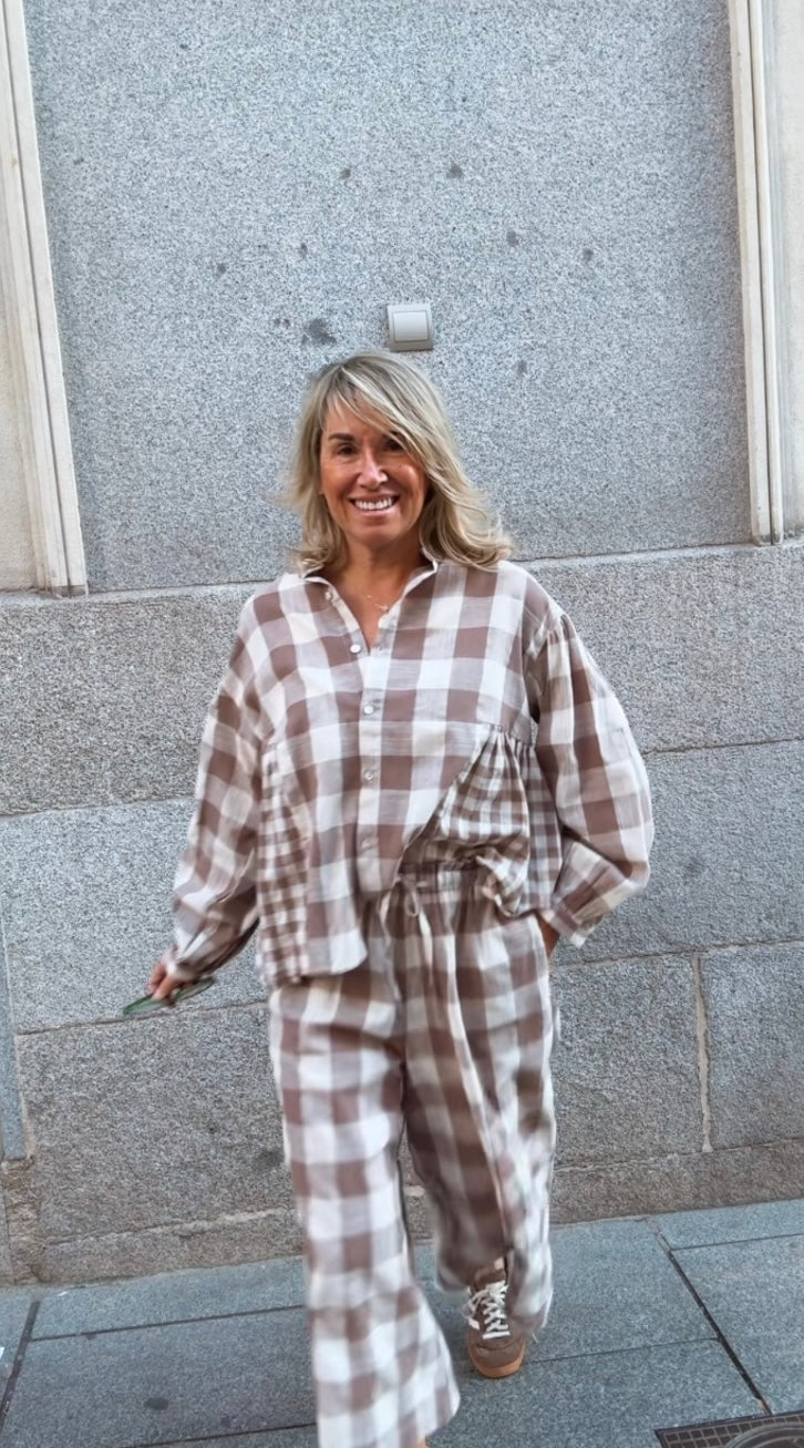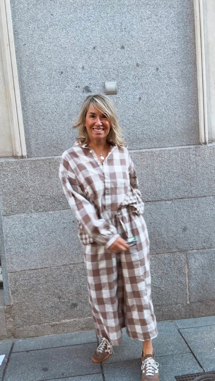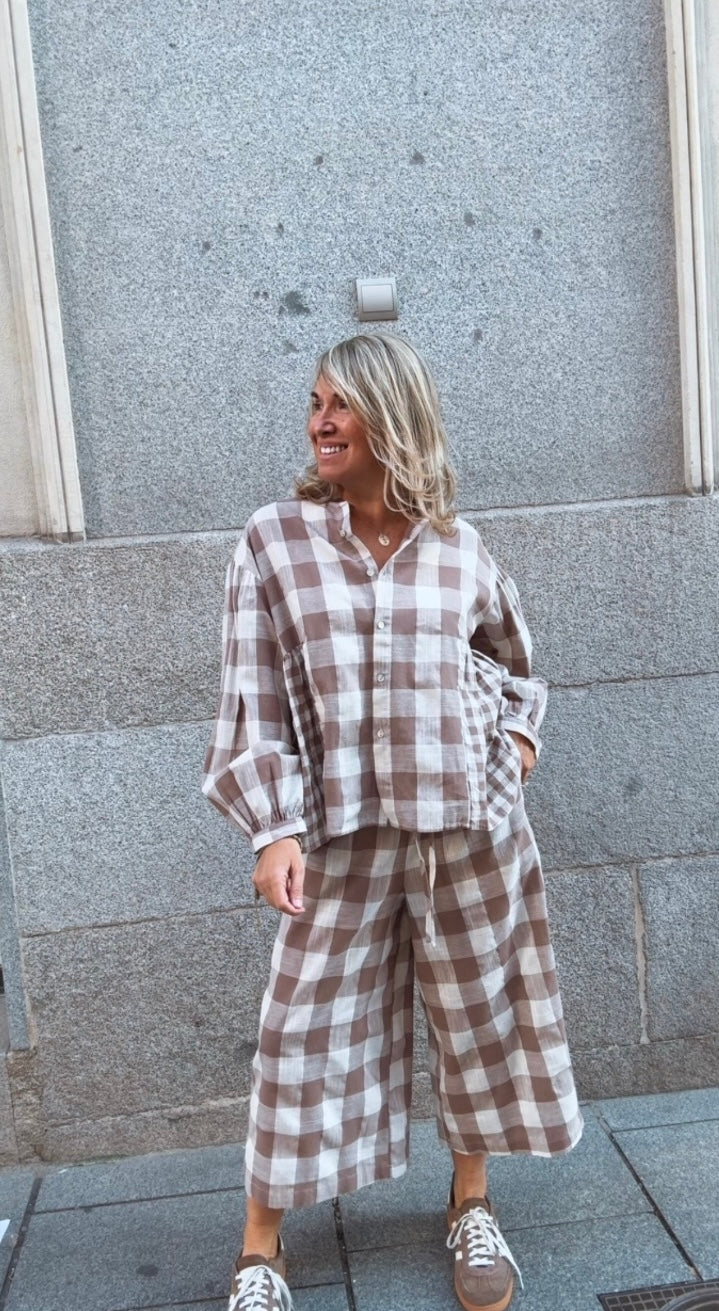 Pantalón de pierna ancha estilo palazzo. Cintura de goma elástica con cordón regulable para adaptación. Tiro medio-alto. Diseño de pernera extra ancha con caída recta.