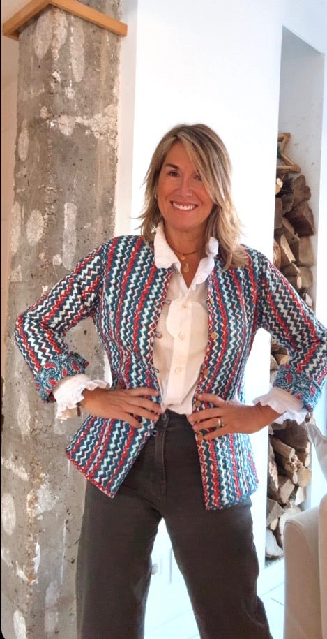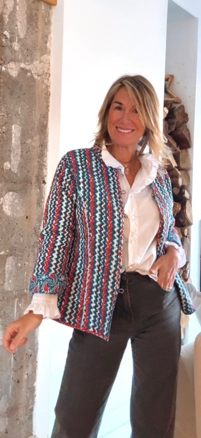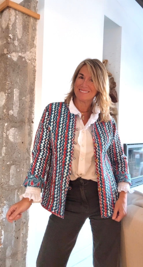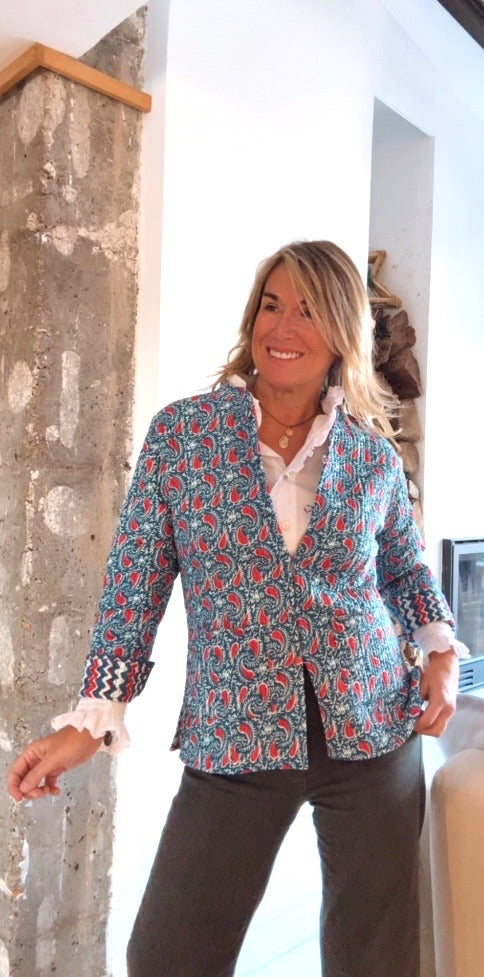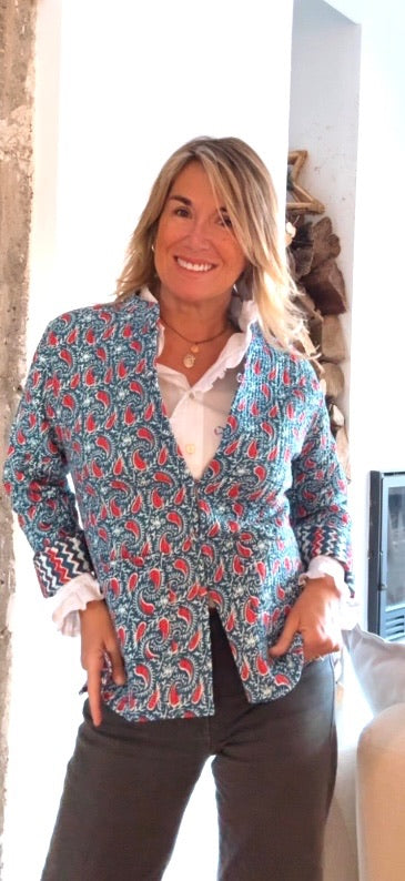 Chaqueta reversible estampada. Abotonada. Bolsillos frontales. 100% Algodón.