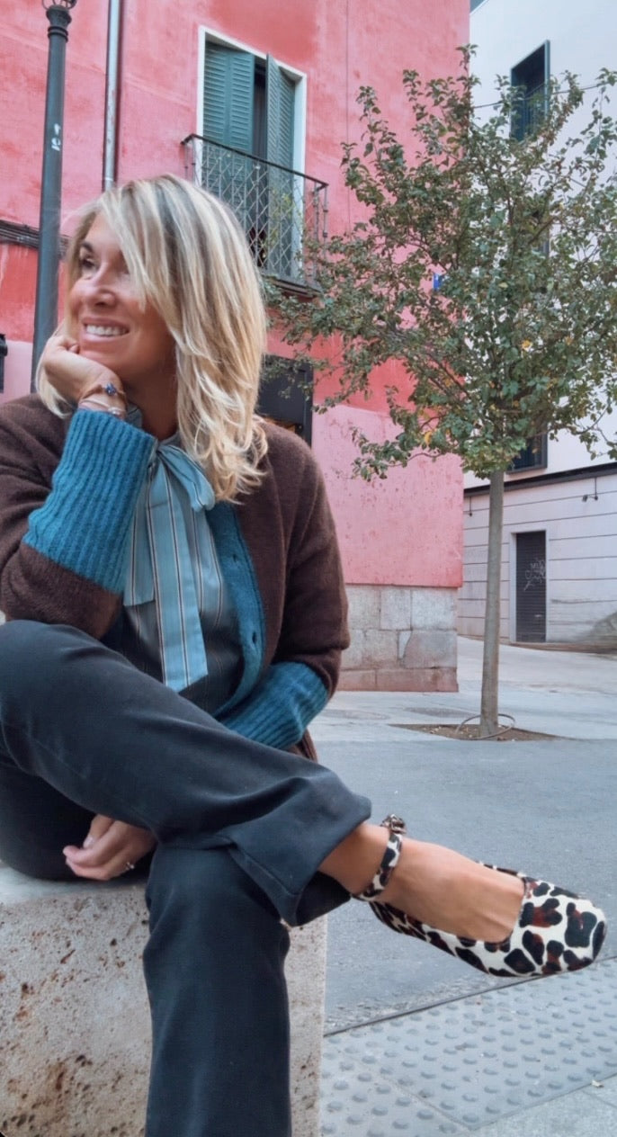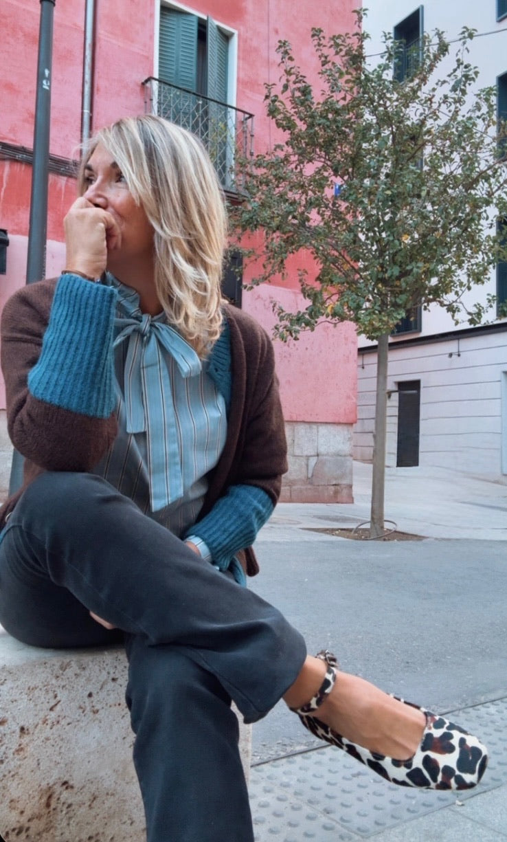 Diseño exclusivo en color chocolate y marino.