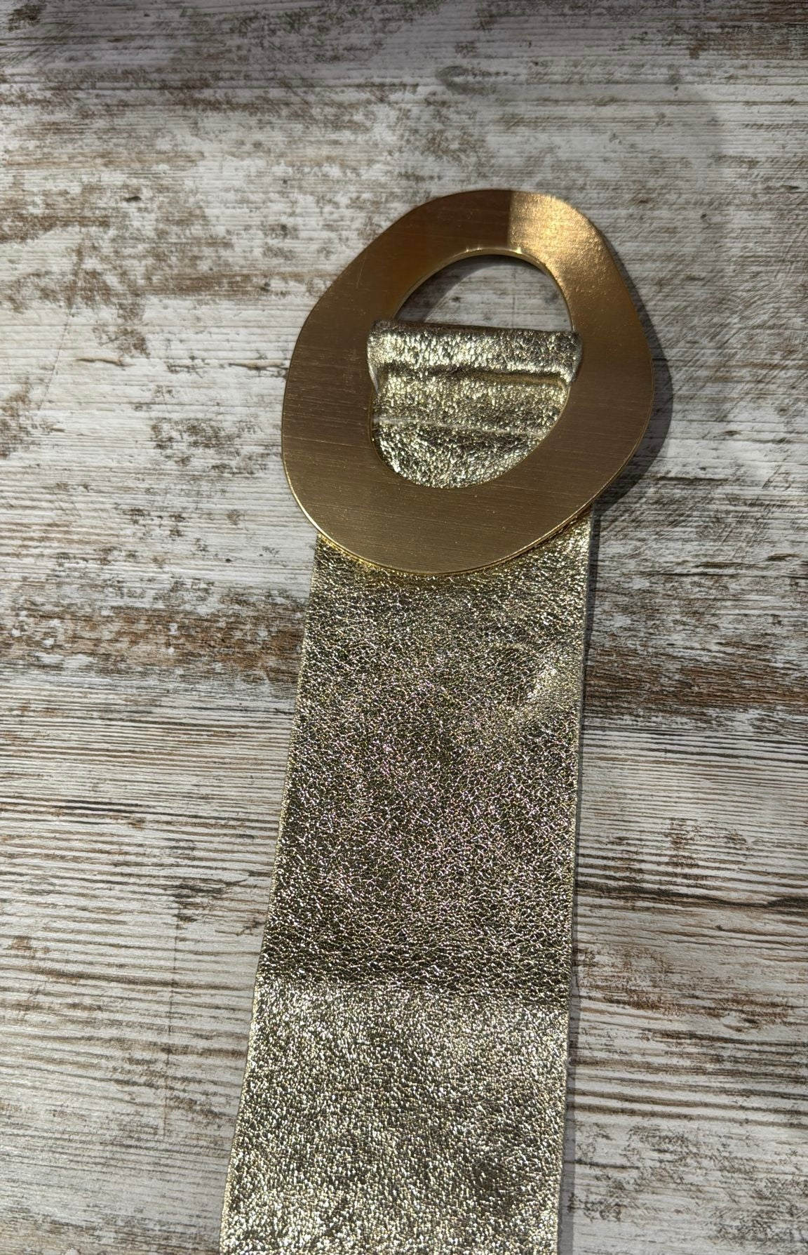 Cinturón de serraje oro, con hebilla metálica en acabado dorado. Diseño ergonómico confeccionado al 100% de piel auténtica.