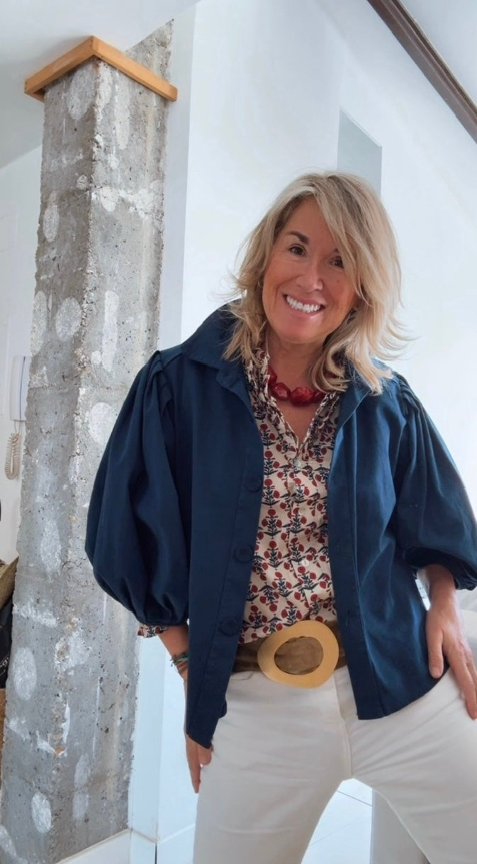 Chaqueta confeccionada en tejido 100% algodón. Mangas 3/4 abullonadas con puño fruncido sin elástico.